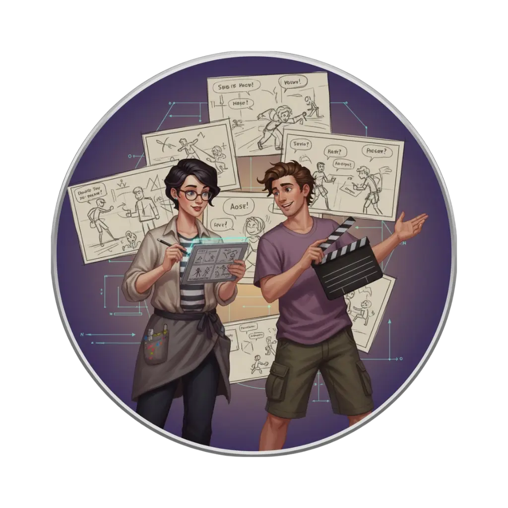 Visual storyboards are made to meticulously organize scenes, character actions, and the overall plot's flow.